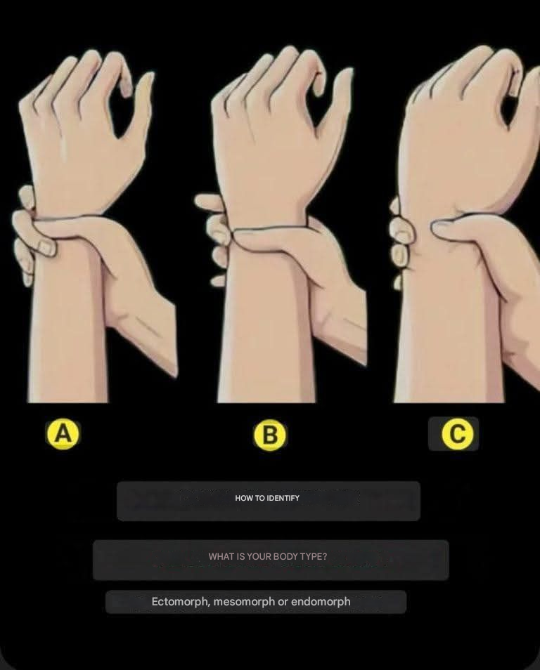 Before taking the test, learn about the three main body types . Good to know: most women are a mix of two types, and that's perfectly normal. Ectomorph (the slender one): Slender figure, narrow shoulders, fine bone structure gains muscle and weight with difficulty Fast metabolism (burns calories quickly) Long limbs, with little body fat Mesomorph (athletic): Naturally muscular physique, defined shoulders, defined waist Gain muscle easily and lose fat easily Body very responsive to sport Medium to large frame Do you like this tip? Receive the best ones every morning. It's free. No spam, I promise, swear, spit! Join us Already 3 million readers! Endomorphic (the round one): Round figure, wide hips, broad frame Gains weight easily (muscle AND fat) Slow metabolism (stores easily) Naturally generous curves Important: You don't necessarily fit 100% into one body type. For example, you could be ecto-mesomorphic (slim but builds muscle easily), endo-mesomorphic (stocky with fat to lose), etc. This is actually the case for the majority of women! The quick test to identify your body type Test 1: Measure your wrist Take a tape measure and measure your wrist at its narrowest point. Wrist circumference less than 16 cm = ectomorph tendency Wrist circumference between 16 and 18 cm = mesomorphic tendency Wrist circumference greater than 18 cm = endomorphic tendency Test 2: Look at how your body has always reacted Think about how your body has always worked: Have you always been thin and are struggling to gain weight? This is a sign of an ectomorphic profile. Do you easily gain muscle when you exercise regularly? This is typical of the mesomorph profile. Do you gain weight easily and have difficulty losing it? This is characteristic of the endomorphic profile. Test 3: Look at your natural silhouette Observe your body without sport or strict diet: Are you very thin with few curves? This is a sign of an ectomorphic profile. Are you naturally muscular with defined shoulders? This is typical of the mesomorphic profile. Are you curvy with generous curves? This is characteristic of the endomorphic profile. Ectomorph: how to adapt your sport and diet Your characteristics: You are naturally slim , with a fine bone structure . Building muscle requires more effort from you than from others. If you skip a meal, you lose weight quickly. Your metabolism burns everything you eat. The sport that suits you: Short but intense weight training (3-4 times per week, 45 minutes maximum) Focus on basic exercises that work multiple muscles: squats, lunges, bench press, pull-ups, dips Avoid excessive cardio (it makes you lose weight and burns calories) Crucial rest between sessions (minimum 48 hours between two sessions of the same muscle group) Example workout: 4 exercises × 4 sets of 8-12 repetitions with heavy weights The diet that suits you: Eat MUCH more than you think: 3 large meals + 2-3 snacks per day Increase your carbohydrate intake: rice, pasta, wholemeal bread, sweet potatoes, oatmeal Maintain sufficient protein intake : meat, fish, eggs, legumes (1.6-1.8g per kilogram of body weight) Never skip a meal, even if you're not hungry. High-calorie snacks : bananas + peanut butter, cottage cheese + dried fruit, tuna sandwich Examples of meals: Breakfast: 80g of oatmeal + 1 banana + 30g of peanut butter + 250ml of whole milk Lunch: 120g of chicken + 200g of basmati rice + vegetables + 1 tablespoon of olive oil Snack: 50g of almonds + 1 apple Dinner: 120g of salmon + 200g of wholemeal pasta