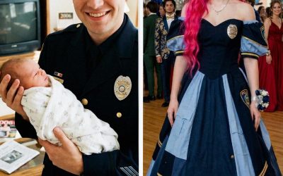 My daughter wore a prom dress she made from her late father's police uniform. When a girl poured punch all…