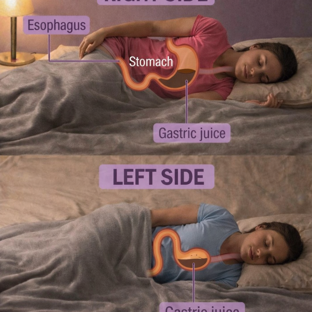 Sleeping on the right side can increase acid reflux, because of how the stomach and esophagus are positioned. Increased reflux can lead to more throat irritation overnight, which may make snoring worse—especially in people who already have GERD.