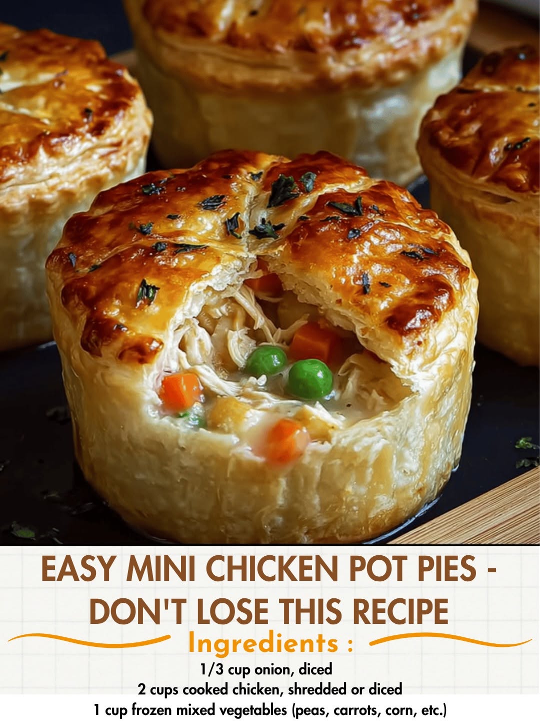 Easy Mini Chicken Pot Pies are individual-sized savory pies filled with creamy chicken and vegetables, wrapped in a flaky crust. Perfect for weeknight dinners, parties, or meal prep!