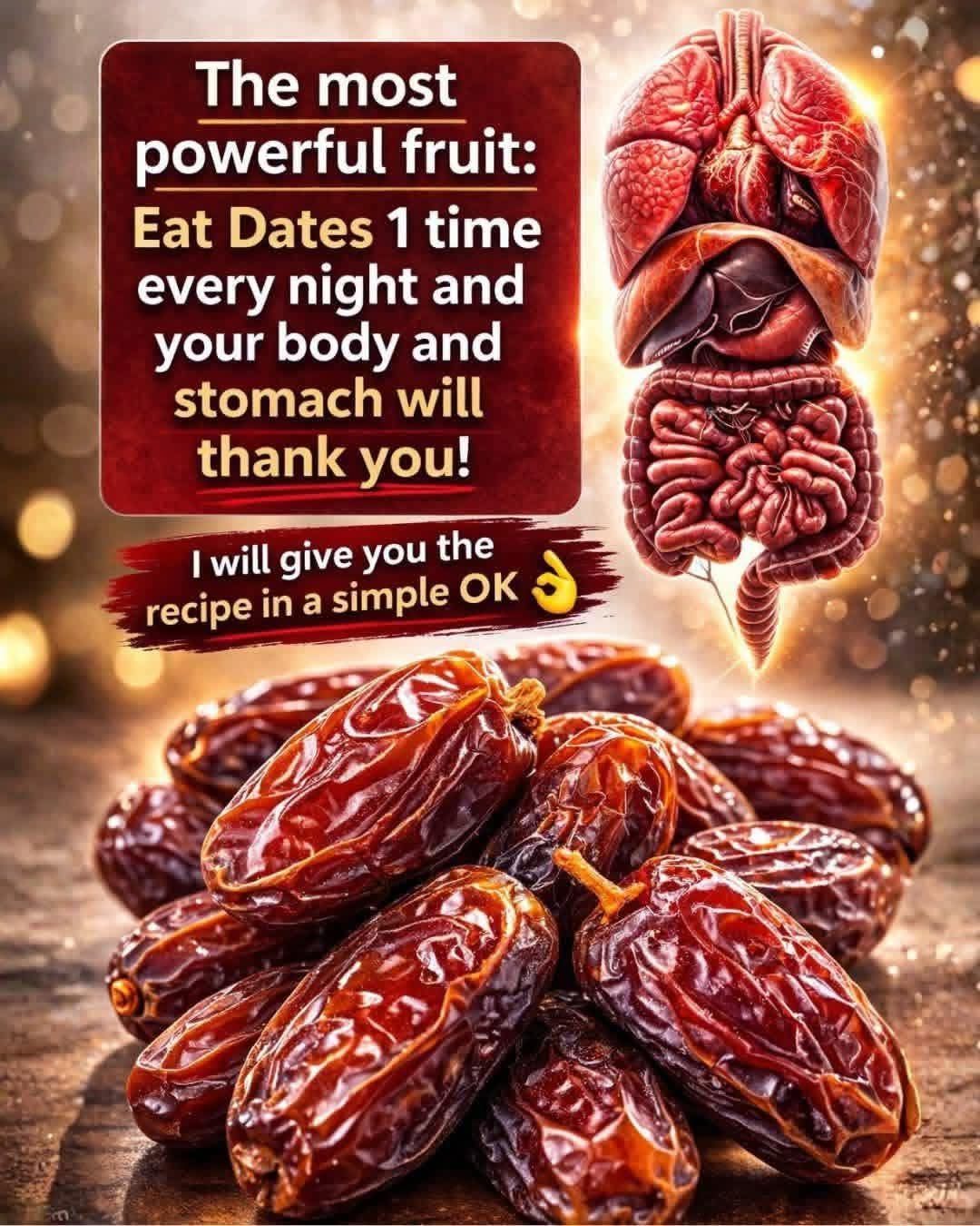 Key Health Benefits of Eating Three Dates Daily1. Supports Digestive HealthDates are high in dietary fiber, which helps keep the digestive system moving smoothly. Eating them regularly may prevent constipation and improve bowel regularity.2. Boosts Energy LevelsThe natural sugars in dates — including glucose and fructose — provide a quick energy boost without the crash associated with processed snacks. This makes them ideal before workouts or as an afternoon pick-me-up.3. Promotes Heart HealthDates contain antioxidants that may help reduce “bad” LDL cholesterol and protect the heart. Potassium and magnesium also play a role in maintaining healthy blood pressure.4. Helps Regulate BloodSugarDespite their sweetness, dates have a low to medium glycemic index, meaning they raise blood sugar slowly. That makes them easier on blood sugar levels when eaten in moderation.5. Supports Brain FunctionPotassium and beneficial plant compounds in dates may help support brain health and cognitive function over time.6