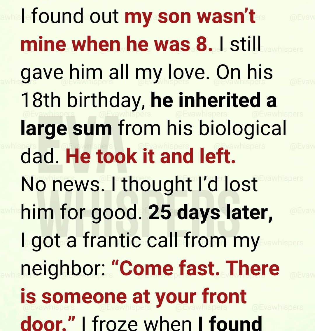 Later, there were conversations. Painful ones. His mother, my ex-wife, finally admitted the truth. There had been someone else. She had known all along.