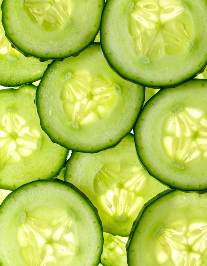 Cucumbers are rich in antioxidants and silica, which are known to promote healthy skin. The high water content in cucumbers helps keep the skin hydrated, improving its elasticity and reducing the appearance of fine lines and wrinkles.