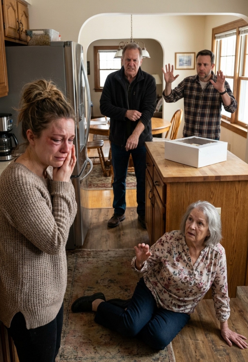 He crossed the kitchen, grabbed Kyle by the front of his sweater, and s.lam.med him against the wall with enough force to shake the framed photo beside the refrigerator. Kyle’s confidence disappeared instantly, replaced by shock and fear.