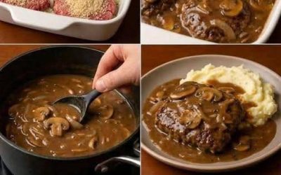 Salisbury Steak with Onion Gravy -Don't LOSE this Recipe Ingredients Steaks 500 g ground beef ½ cup breadcrumbs 1 egg 1 teaspoon Worcestershire sauce 1 teaspoon garlic powder ½ teaspoon onion powder ½ teaspoon salt ½ teaspoon black peppe