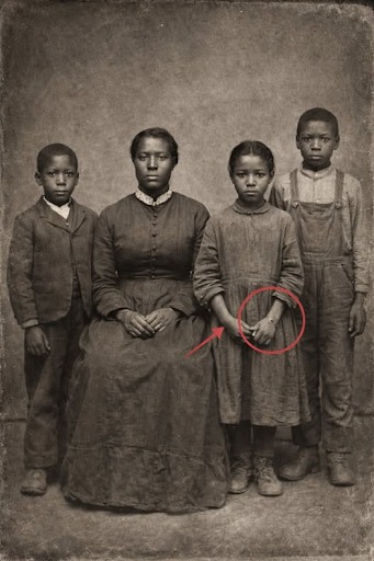 The discovery comes more than a century later. Sarah Mitchell, a historian and archivist in Richmond, digitized the high-resolution photograph when her attention wandered from the faces. What caught her eye was the wrist of a young girl, standing near the center of the image. Around it, faint but unmistakable circular marks were visible. Too even to be folds of fabric. Too purposeful to be the ravages of time.